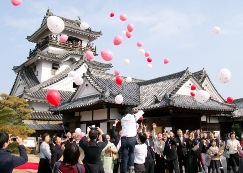 宝石珊瑚は長い年月をかけ成長するのと同様に、35年もの長い月日で築き上げてきた夫婦の絆を、これからも成長していただきたいという思いを込め、結婚35周年を迎える高知県内のご夫婦をご招待し、高知城の本丸にて珊瑚婚式を開催しています。