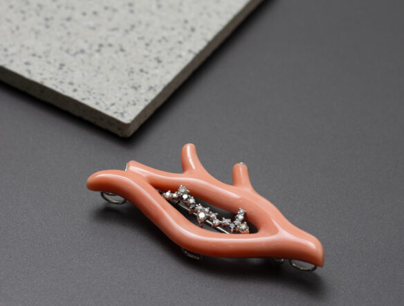 宝石珊瑚の魅力の発信と伝統技術の伝承と発展を目的に、昭和50年より開催しているイベントです。宝石珊瑚は高知県の地場産品であり、宝石珊瑚に係る企業や職人は高知県内に集中しています。「土佐さんごまつり」は、全高知珊瑚協同組合連合会に加盟する組合員がその技術力や表現力を競うコンテストとして年1回開催しています。作品は、宝石珊瑚を用いて立体彫刻や額装彫刻にて様々な表現を競う「立体・平面彫刻の部」、宝石珊瑚ジュエリーの美しさを競う「宝飾の部」の2部門にエントリー。今年は、例年通りのオンライン開催と、共催の高知みらい科学館のご協力により、オーテピア高知図書館4階にて展示開催も行いました。