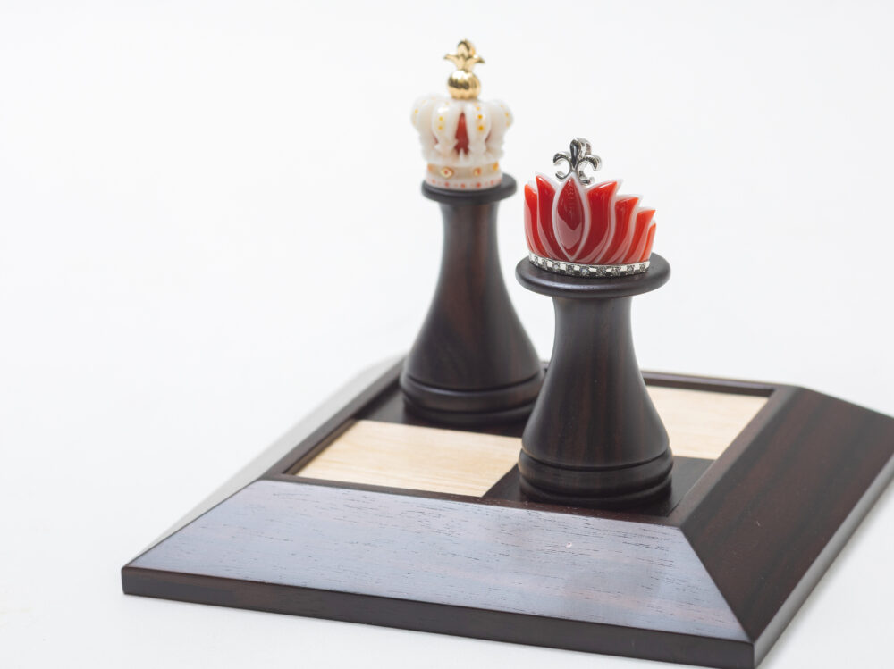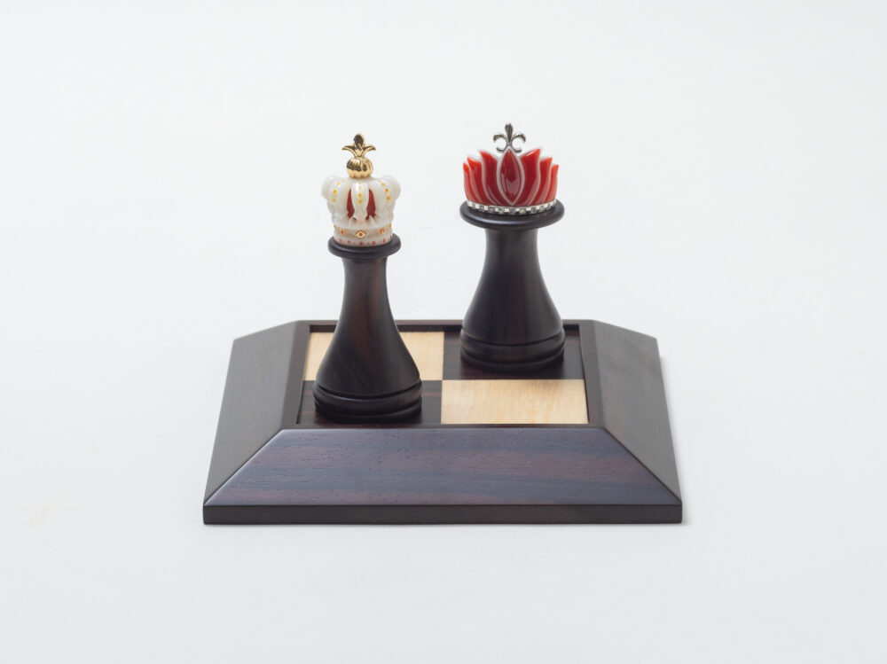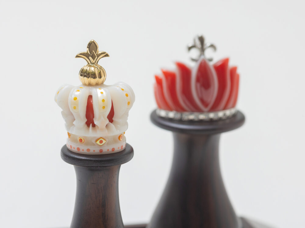 王冠とティアラを珊瑚でそれぞれ栄誉と優雅さを出せるように表現しました。