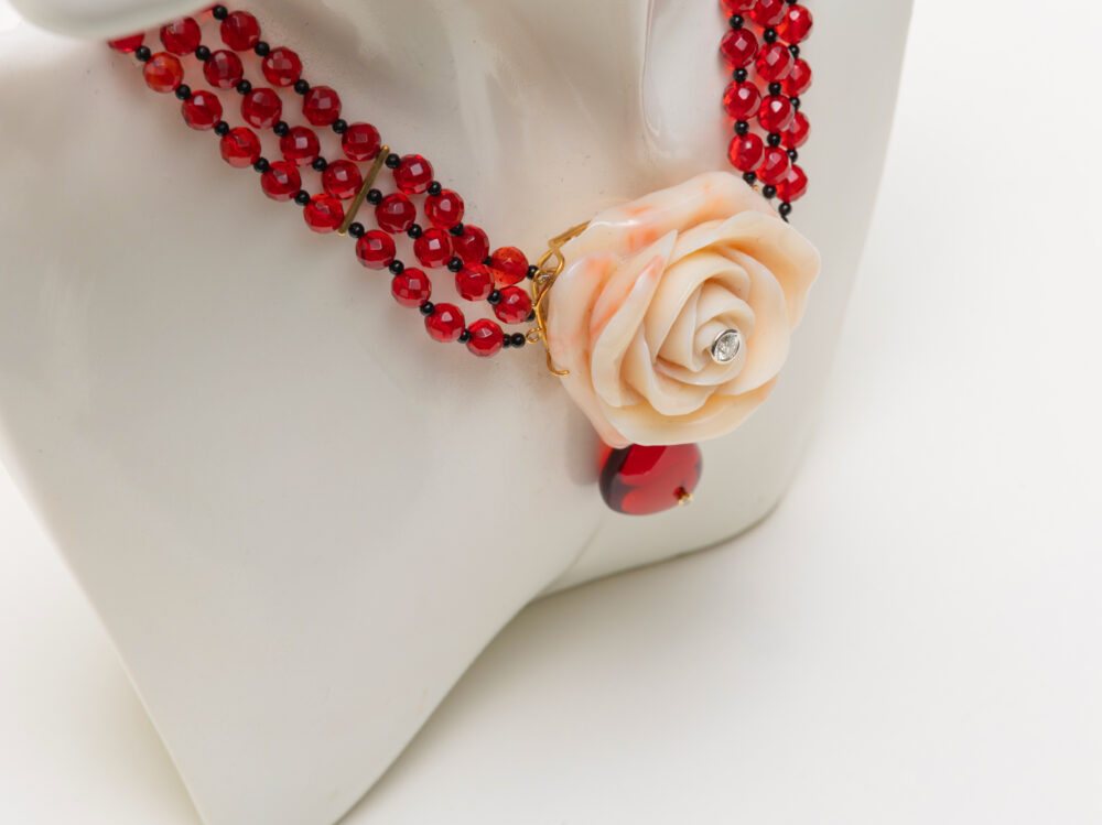 おんなの頸、おんなの首筋、そして、おんなの胸の谷間を、飾るとしたら、と、珊瑚は想像しました。人間たちよ、おんなたちよ、もっと美しくあれ。